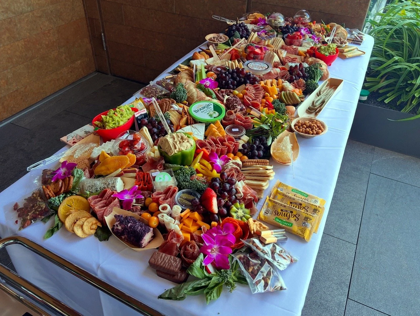For a relaxed, stylish presentation, the flat lay grazing table is a seamless and easy-to-manage option. Arranged directly on a flat surface, it offers a beautiful spread that your guests can enjoy at their leisure. After the event, everything can be easily disposed of—no cleanup or items to save, making it a hassle-free choice for you.